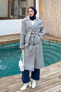 Lamelif Bağlama Detaylı Kaşe Kaban Gri