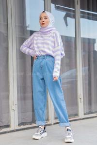 Modalamelif Balıkçı Yaka Çizgili Kazak Lila