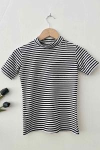 Lamelif Balıkçı Yaka Çizgili Kısa Kol Body Beyaz Siyah