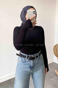 Lamelif Bisiklet Yaka Düz Renk Body Siyah