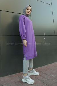 Lamelif Kol Biyeli Sweat Mor