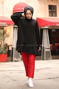 Modalamelif Balon Kol Fırfır Detaylı Tunik Siyah