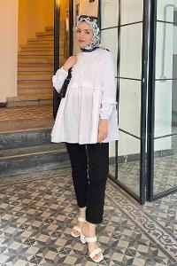 Lamelif Lopez Balon Kol Tunik Beyaz
