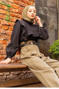 Modalamelif  Balon Kol Gipeli Gömlek Siyah