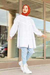 Modalamelif Balon Kol Gipeli Gömlek Tunik Beyaz