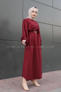 Lamelif Kuşaklı Scuba Elbise Bordo