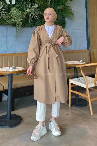 Lamelif Balon Kol Kuşaklı Trençkot Soft Kahve