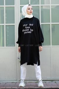 Lamelif İki iplikli Arma Detaylı Sweat Tunik Siyah
