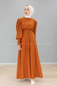 Modalamelif Balon kol Prenses Elbise Taba