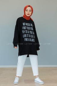 Modalamelif Balon Kol Yazı Baskılı Tunik Siyah