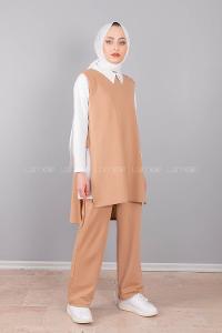 Lamelif Balance Armalı Çımalı İkili Tesettür Takım Camel