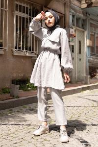 Lamelif Balance Armalı Çımalı İkili Tesettür Takım Gri