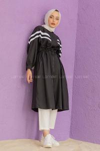 Lamelif Gold Düğmeli Bağlamalı Tesettür Kaban Siyah