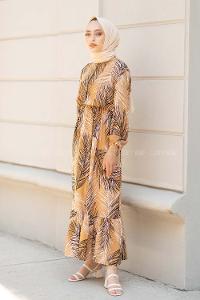 Lamelif Taş Detaylı Tesettür Elbise Soft Kahve