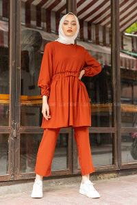 Modalamelif Bel Büzmeli Şık Takım Acı Kahve