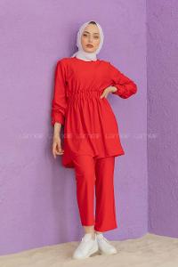 Modalamelif Bel Büzmeli Şık Takım Kırmızı