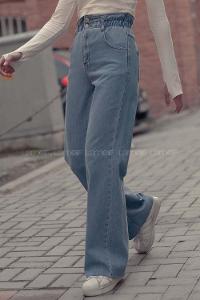 Lamelif Bel Lastikli Bol Paça Mom Jean Açık Mavi