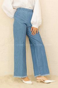 Modalamelif Bel Lastikli Paça Püskül Pantolon Kot Mavisi