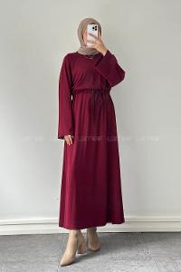 Lamelif Bel Tünel Detaylı Elbise Bordo