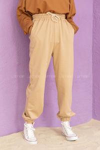 Lamelif Çıma Detaylı Eşofman Altı Taş Rengi