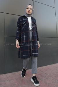 Modalamelif Belden Bağlamalı Çift Cepli Ekose Gömlek Lacivert