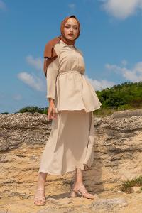 Lamelif Balance Armalı Çımalı İkili Tesettür Takım Camel