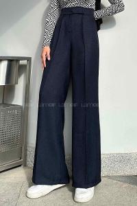 Lamelif Beli Cırt Cırtlı Palazzo Model Pantolon Lacivert