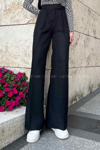 Lamelif Beli Cırt Cırtlı Palazzo Model Pantolon Siyah