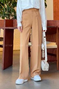 Lamelif Cırt Kapamalı Krep Pantolon Sütlü Kahve