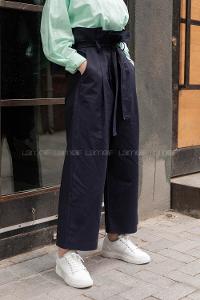 Modalamelif Beli Fırfırlı Kuşaklı Pantolon Lacivert