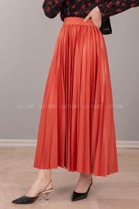 Lamelif Önü Pileli Scuba Kumaş Etek Kahverengi
