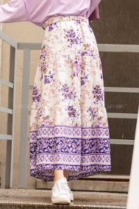 Modalamelif Beli Lastikli Desenli Çan Etek Mor