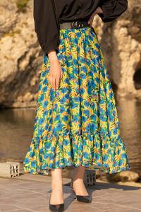 Lamelif Tensel Tesettür Etek Yağ Yeşili