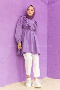 Modalamelif Beli Lastikli Fırfır Dantel Tunik Lila