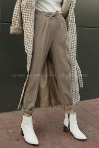Modalamelif Beli Lastikli Kaşe Pantolon Vizonrengi