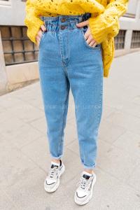 Modalamelif Beli Lastikli Mom Kot Pantolon Açık Mavi