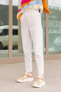 Modalamelif Beli Lastikli Mom Kot Pantolon Bej