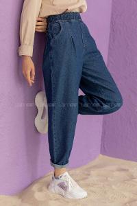 Modalamelif Beli Lastikli Pensli Paça Kot Pantolon Mavi