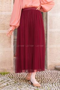 Modalamelif Beli Lastikli Tül Etek Bordo