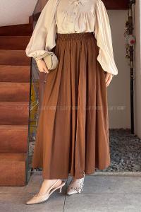 Lamelif Beli Lastikli Uzun Gofre Tesettür Etek Acı Kahve