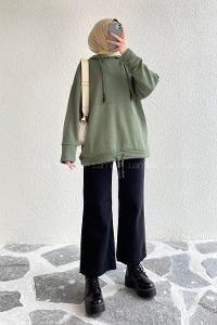 Lamelif Kapüşonlu Salaş Sweatshirt Siyah