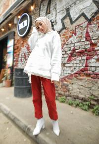 Lamelif Kapüşonlu Salaş Sweatshirt Beyaz