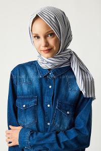 Modalamelif Beyaz Mavi Çizgili Pamuk Şal