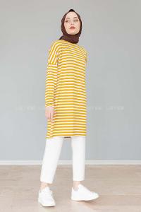 Modalamelif Bisiklet Yaka Çizgili Sweat Shirt Hardal Sarısı