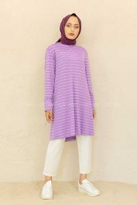 Modalamelif Bisiklet Yaka Çizgili Tunik Lila