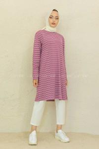 Modalamelif Bisiklet Yaka Çizgili Tunik Mor