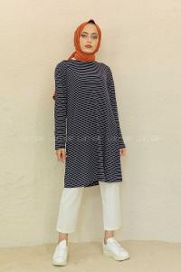 Lamelif Manşeti Biyeli Tunik Lacivert