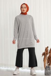 Lamelif Yırtmaç Detaylı Sweat Gri