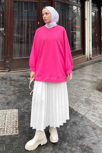 Lamelif Jasmin Bisiklet Yaka Oversize Sweat Şeker Pembe