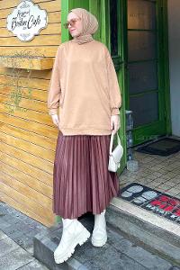 Lamelif Jasmin Bisiklet Yaka Oversize Sweat Camel